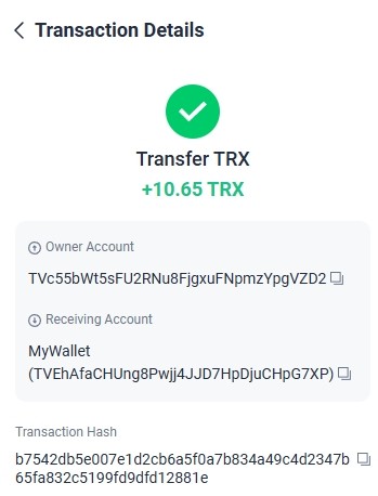 Amount:-7.00 TRX