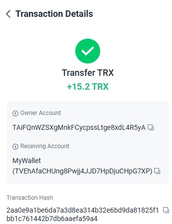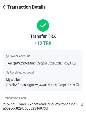 Спасибо за рефбек +10.55 TRX