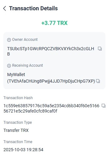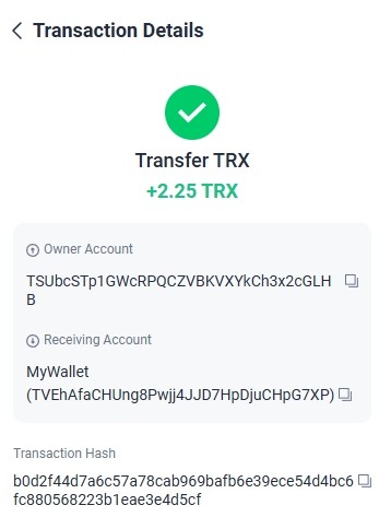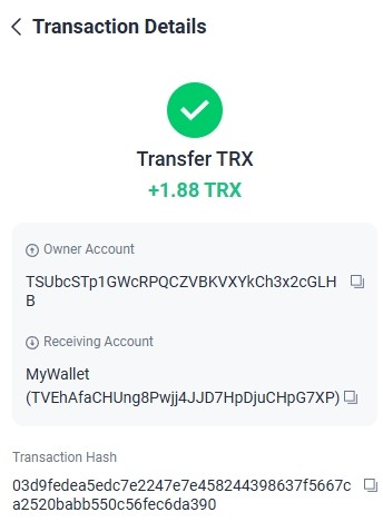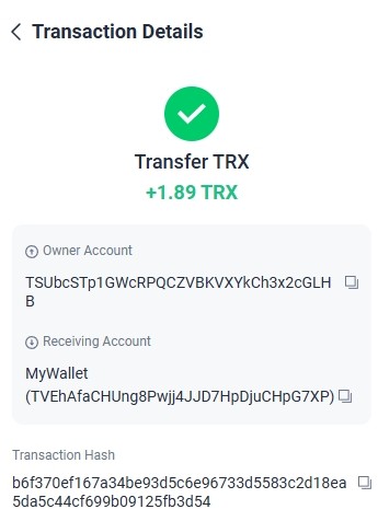 https://tronscan.org/#/transaction/4d28f418a78ac8b4790c0b39a2631ddcf38a88f82eee