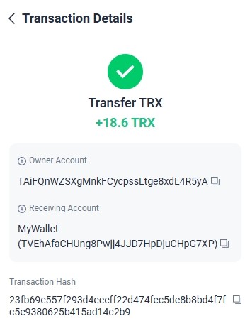 Спасибо за рефбек +10.55 TRX