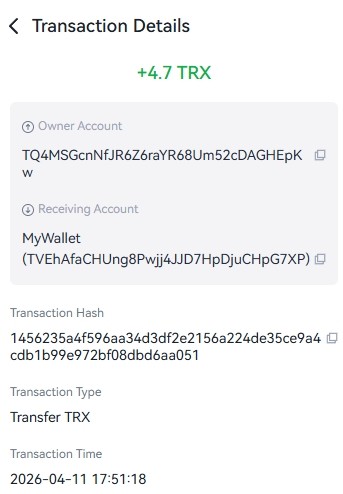 https://tronscan.org/#/transaction/3e31311b4126b2c7e1761e3d1c563b5ece3e6696ced3