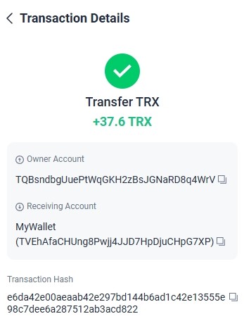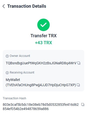 https://tronscan.org/#/transaction/2086fa8af8112e03f125521fabc05c6621b2dae359f5