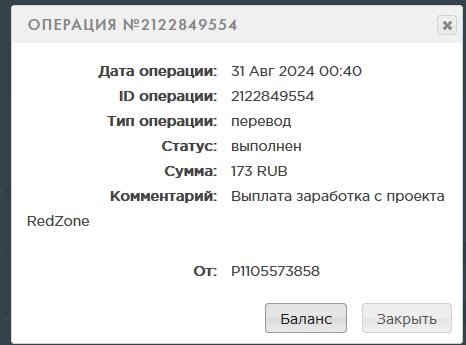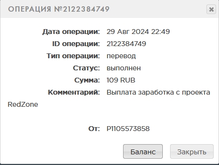 Комментарий: Выплата заработка с проекта RedZone