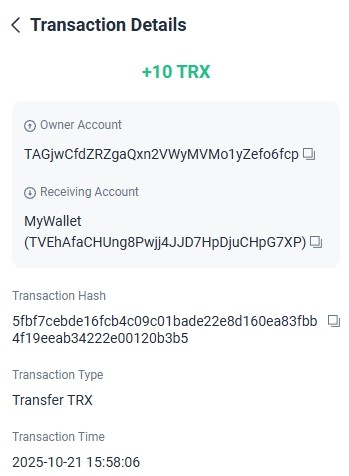 13. 11.000000 has been successfully sent to your Tron account TRXsGAfwxG****