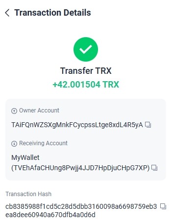 https://tronscan.org/#/transaction/cb0086ee50bf6bc6659d2591f81478da2f02210cd054