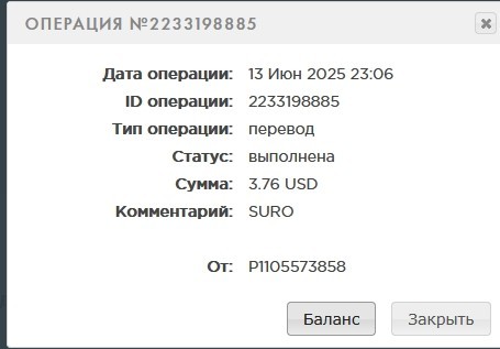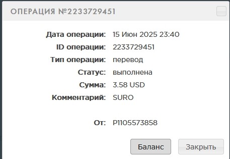 Today at 21:18 Top-up + 0.12 USD Completed Payment system ePayCore E008883 Batch 2786933 Comment SURO