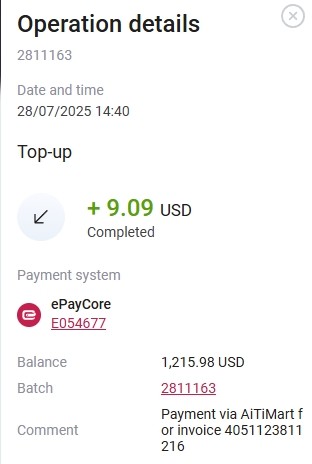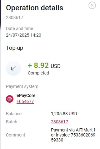 Примечание: Payment via AiTiMart