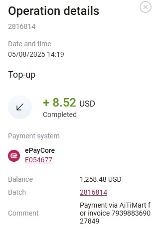 Дата операции: 06.08.2025 13:28