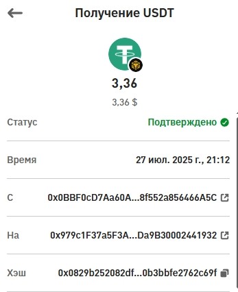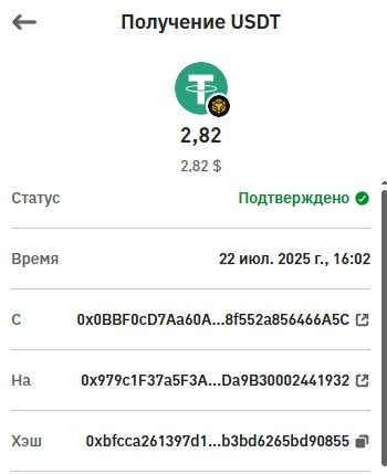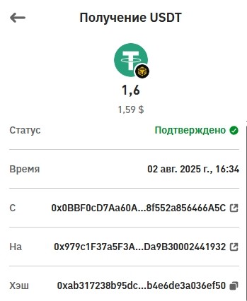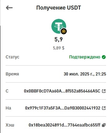 On your wallet 0x325a7D8B2eE032da***** Tether BEP-20 withdrawn 5.2 USDT (batch: ?1337121)