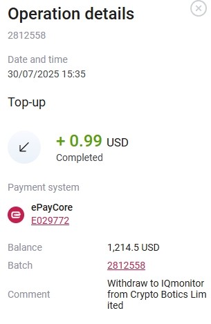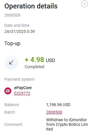 Note: Withdrawal to SecureInvestment from Crypto Botics Limited.